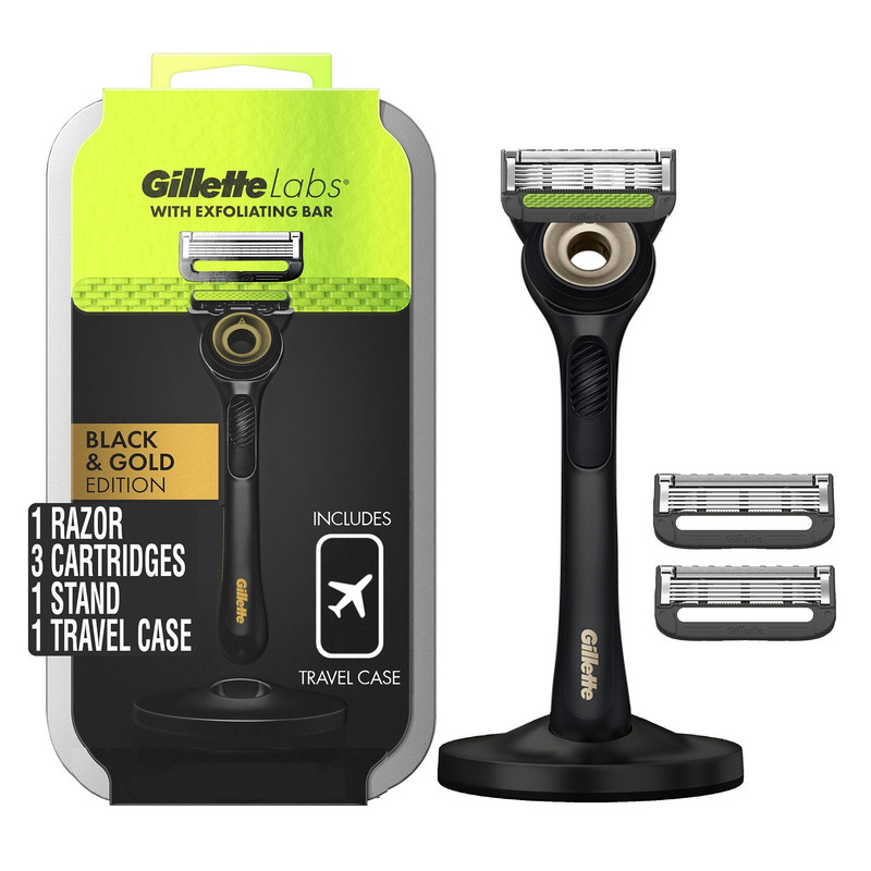خانهمردانهتیغ ژیلت تیغ ژیلت سری LABS مدل BLACK & GOLD به همراه استند و کیف مسافرتی