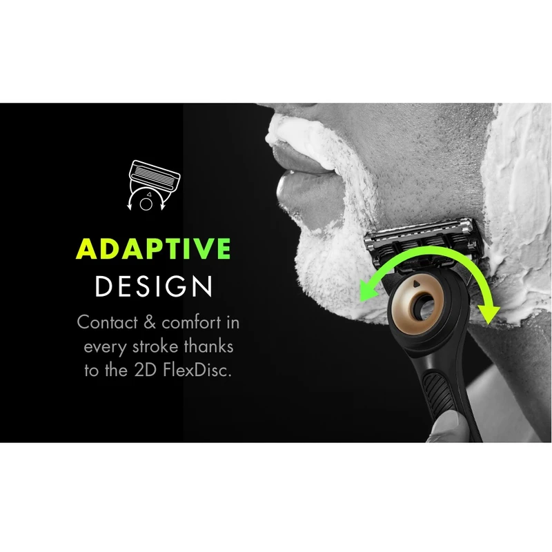تیغه‌ها با طراحی تطبیقی که دارند به لطف فناوری 2D Flexdisc، تیغ با صورت شما سازگار می‌شود و اصلاح به راحتی انجام می‌شود.